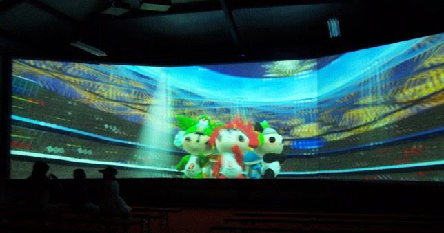 由多塊銀幕組成,通過多臺投影機(jī),采用投影融合技術(shù),創(chuàng)造出超大無縫的逼真畫面。利用電影自身特有的技術(shù)優(yōu)勢,使觀眾在高質(zhì)量的聲畫環(huán)境包圍之中,產(chǎn)生身臨其境的強(qiáng)烈的現(xiàn)場 ……